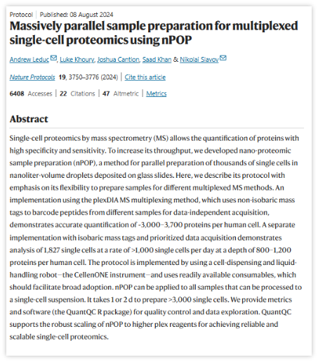Massively Parallel nPOP Sample Preparation for Single-Cell Proteomics, Leduc et al. (Nat Meth) 2024