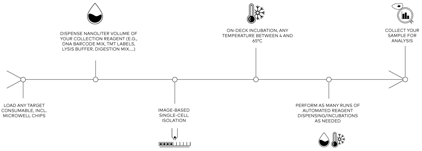 Need streamlined single cell proteomics workflow with minimal hands-on time and maximal proteome coverage? The combination of cellenONE X1 NEO and Cellenion proteoCHIP product range provides robust automated method for single cell proteomics sample preparation. Feed the system with your cell sample, let it guide you through your workflow and output your sample ready for LC-MS.