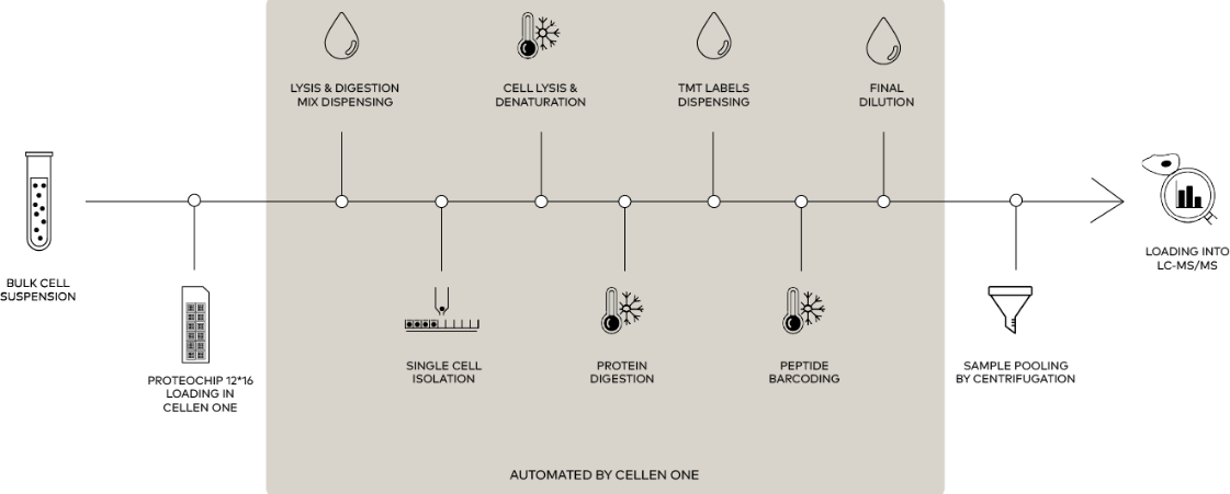 12×16 leverages the full automation of cellenONE, covering isolation, labeling, pooling, and transfer to LC-MS without manual steps.