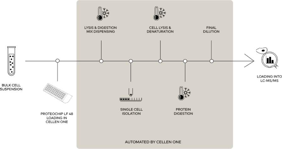 From single-cell isolation to LC-MS-ready samples, LF 48 runs entirely within cellenONE. Application specialists provide training to ensure smooth adoption and reliable use.